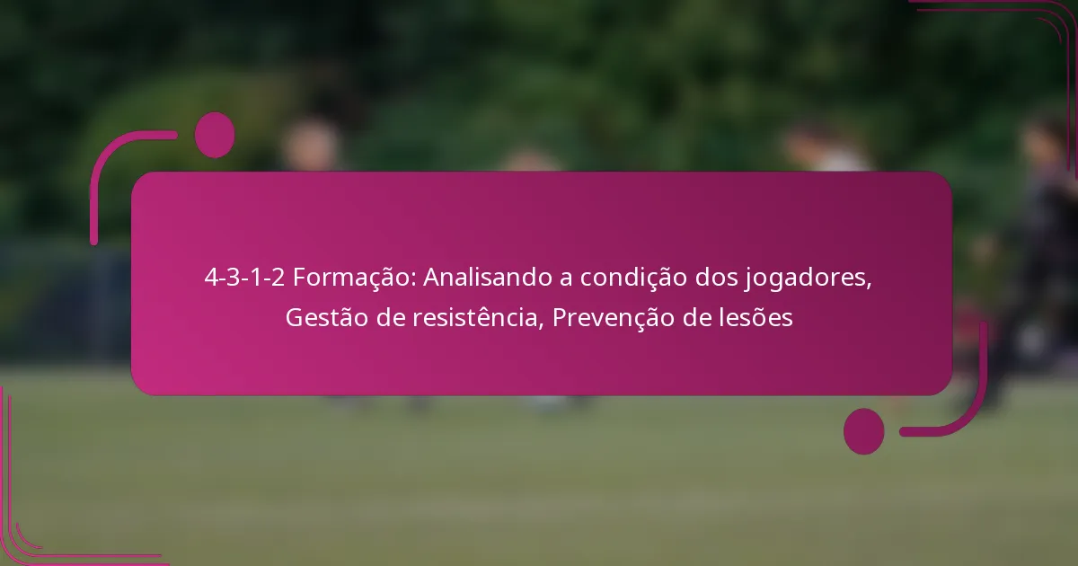 A formação 4-3-1-2 é uma configuração tática no futebol que enfatiza o controlo do meio-campo e uma abordagem equilibrada entre defesa e ataque. Para prosperar nesta formação, os jogadores devem focar na condição física, gestão da resistência e prevenção de lesões, garantindo que conseguem atender às exigências dos papéis ofensivos e defensivos de forma eficaz.