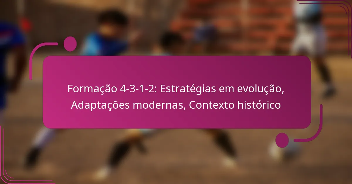 A formação 4-3-1-2 é um esquema tático no futebol que apresenta quatro defensores, três médios, um médio ofensivo e dois avançados, enfatizando tanto a estabilidade defensiva como a criatividade ofensiva. Com o tempo, esta formação evoluiu para se adaptar às exigências táticas do futebol moderno, demonstrando flexibilidade e fluidez no jogo, enquanto mantém uma forte presença no meio-campo.