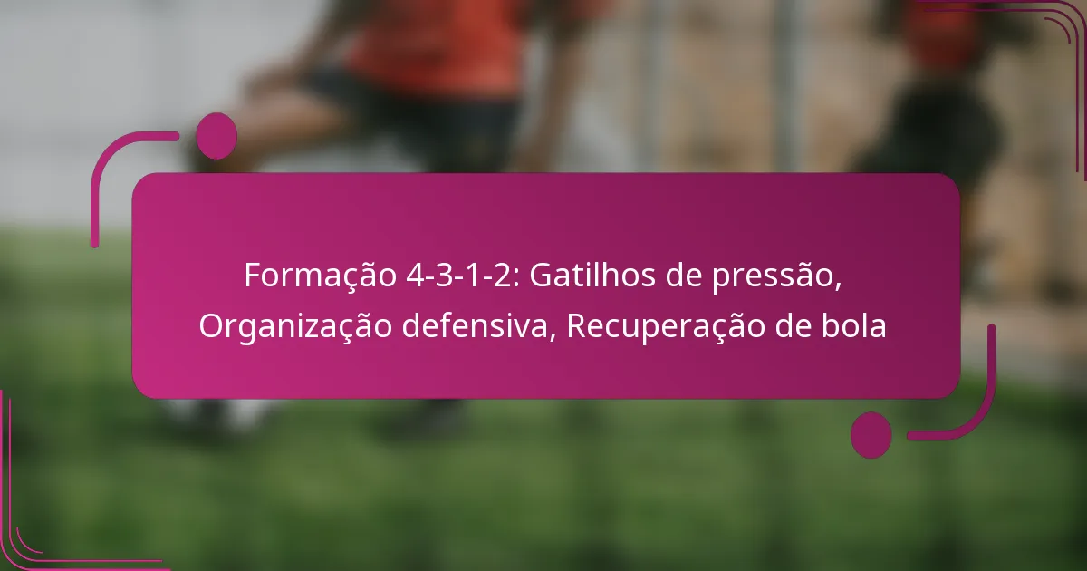 A formação 4-3-1-2 é uma configuração tática no futebol que enfatiza uma forte presença no meio-campo, apresentando quatro defensores, três médios, um médio ofensivo e dois avançados. Esta formação não só proporciona solidez defensiva, mas também permite flexibilidade ofensiva, tornando-a ideal para equipas que pretendem controlar o jogo. Compreender os gatilhos de pressão e manter a organização defensiva são essenciais para uma recuperação eficaz da bola e para a transição entre ataque e defesa.