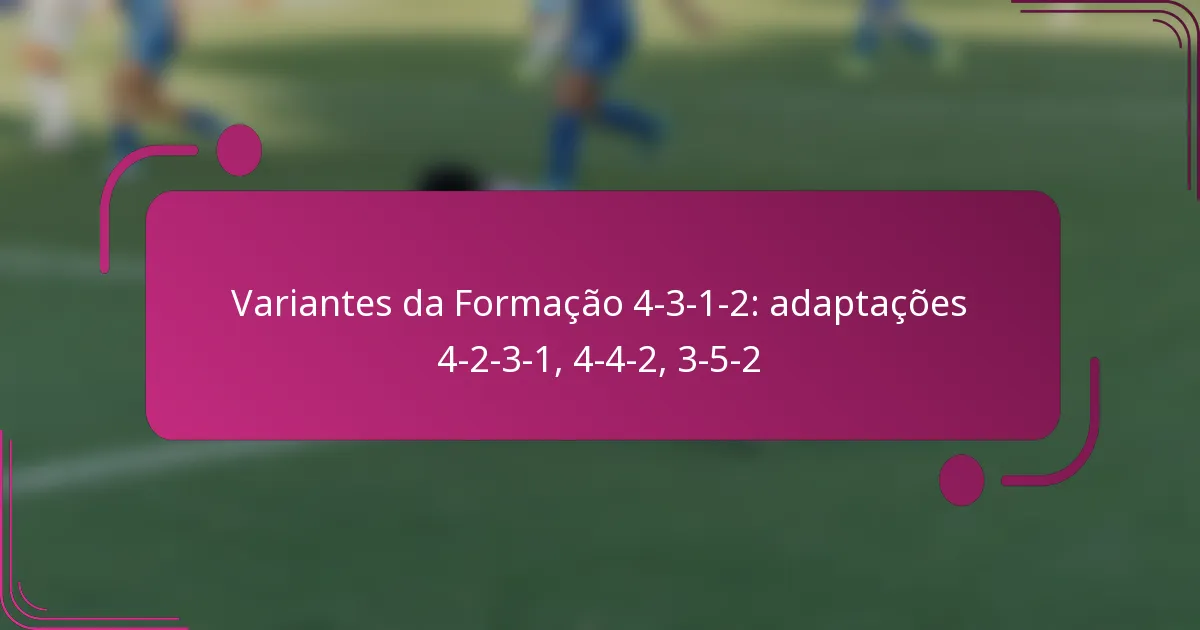 A formação 4-3-1-2 serve como uma configuração tática versátil no futebol, equilibrando a força defensiva com opções de ataque. Variações como a 4-2-3-1 e 4-4-2 adaptam esta formação para melhorar o controlo do meio-campo e proporcionar mais flexibilidade ofensiva, enquanto a 3-5-2 oferece uma abordagem diferente ao utilizar alas para largura. Cada adaptação permite que as equipas ajustem as suas estratégias com base nas forças dos jogadores e nas situações do jogo.