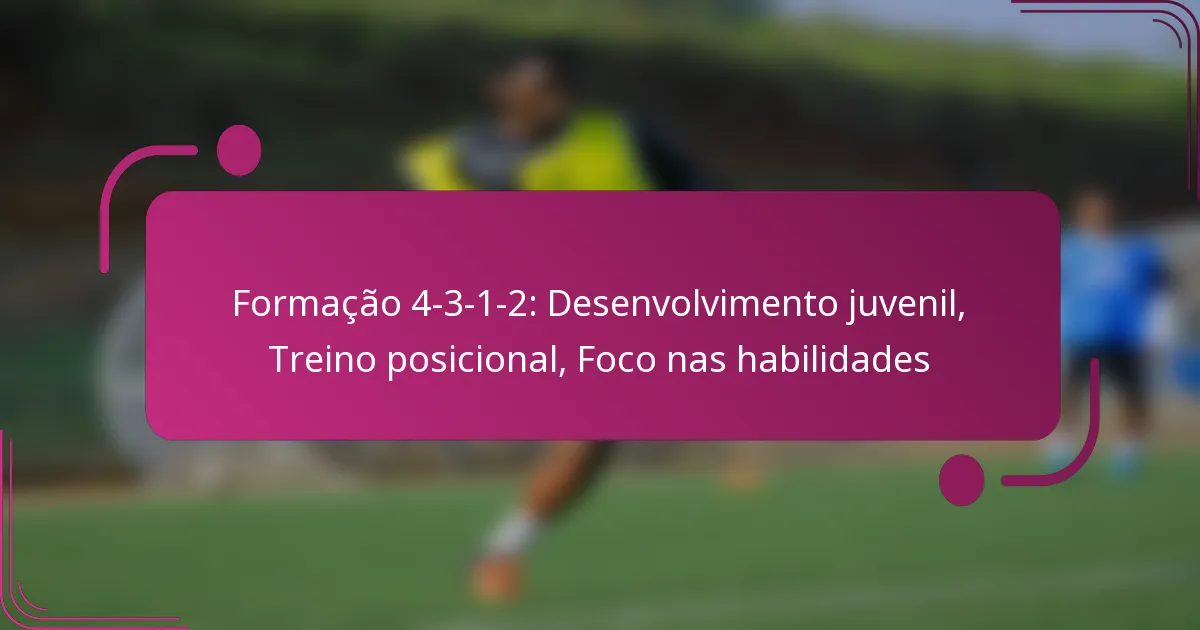 A formação 4-3-1-2 é uma configuração tática no futebol que enfatiza uma forte presença no meio-campo e dois avançados, tornando-a ideal para o desenvolvimento juvenil. Ao promover o trabalho em equipa, a compreensão tática e a comunicação, esta formação ajuda os jovens jogadores a compreenderem os seus papéis enquanto aprimoram as suas habilidades em campo.