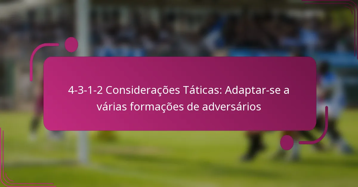 A formação 4-3-1-2 é uma configuração tática versátil no futebol, caracterizada por um meio-campo sólido e uma linha de ataque dupla. Ao adaptar-se a várias formações adversárias, as equipas podem melhorar as suas estratégias defensivas e ofensivas, explorando fraquezas enquanto reforçam as suas próprias forças. Esta adaptabilidade é crucial para manter o controlo e criar oportunidades de golo contra diferentes estilos de jogo.
