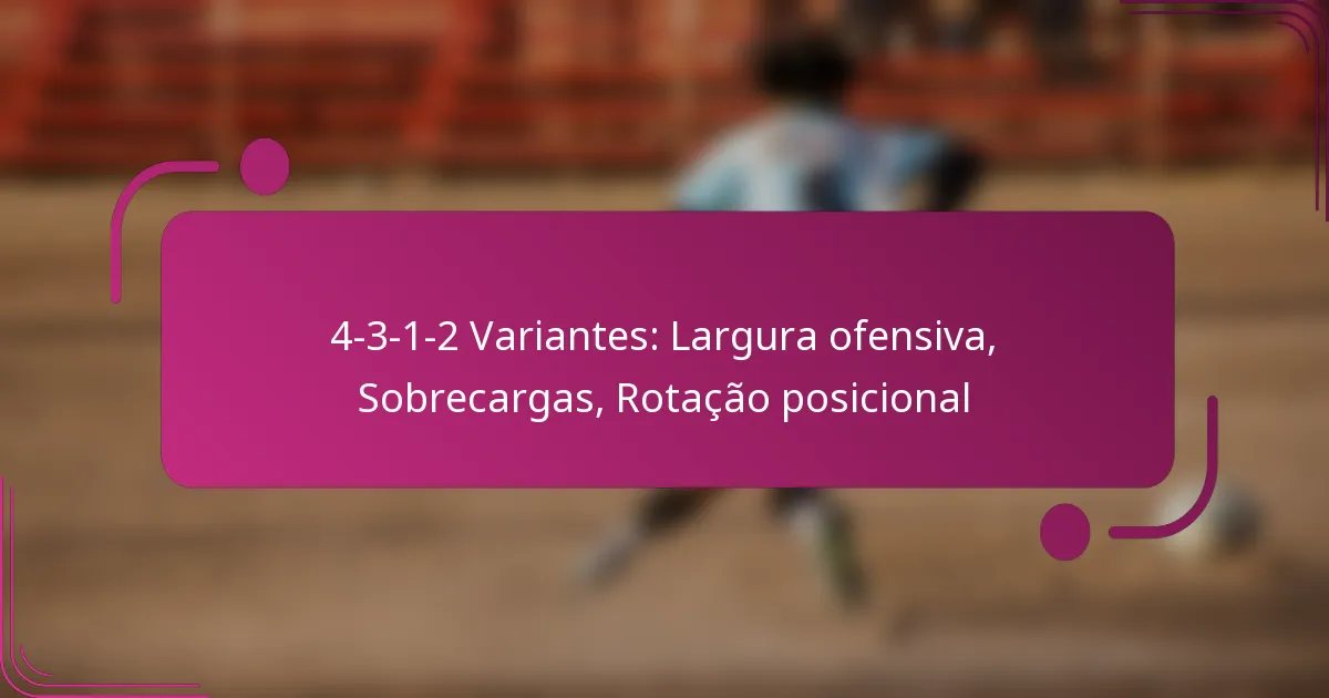 Sobrecargas no futebol referem-se a situações em que uma equipa cria uma vantagem numérica numa área específica do campo, permitindo jogadas ofensivas mais eficazes. Na formação 4-3-1-2, estas sobrecargas podem ser desenvolvidas estrategicamente através de posicionamento e movimento, melhorando as capacidades ofensivas da equipa.